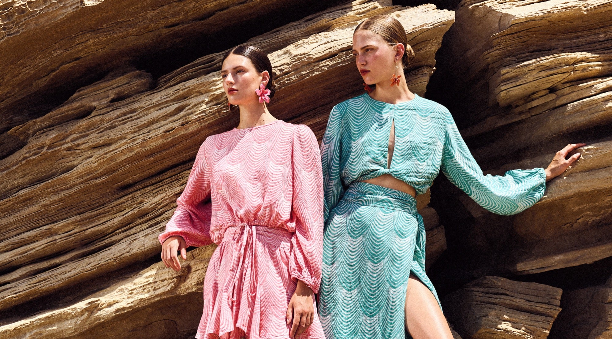 OFF SHOULDER LINEN DRESS "FEATHER" PINK/CHAMPAGNE