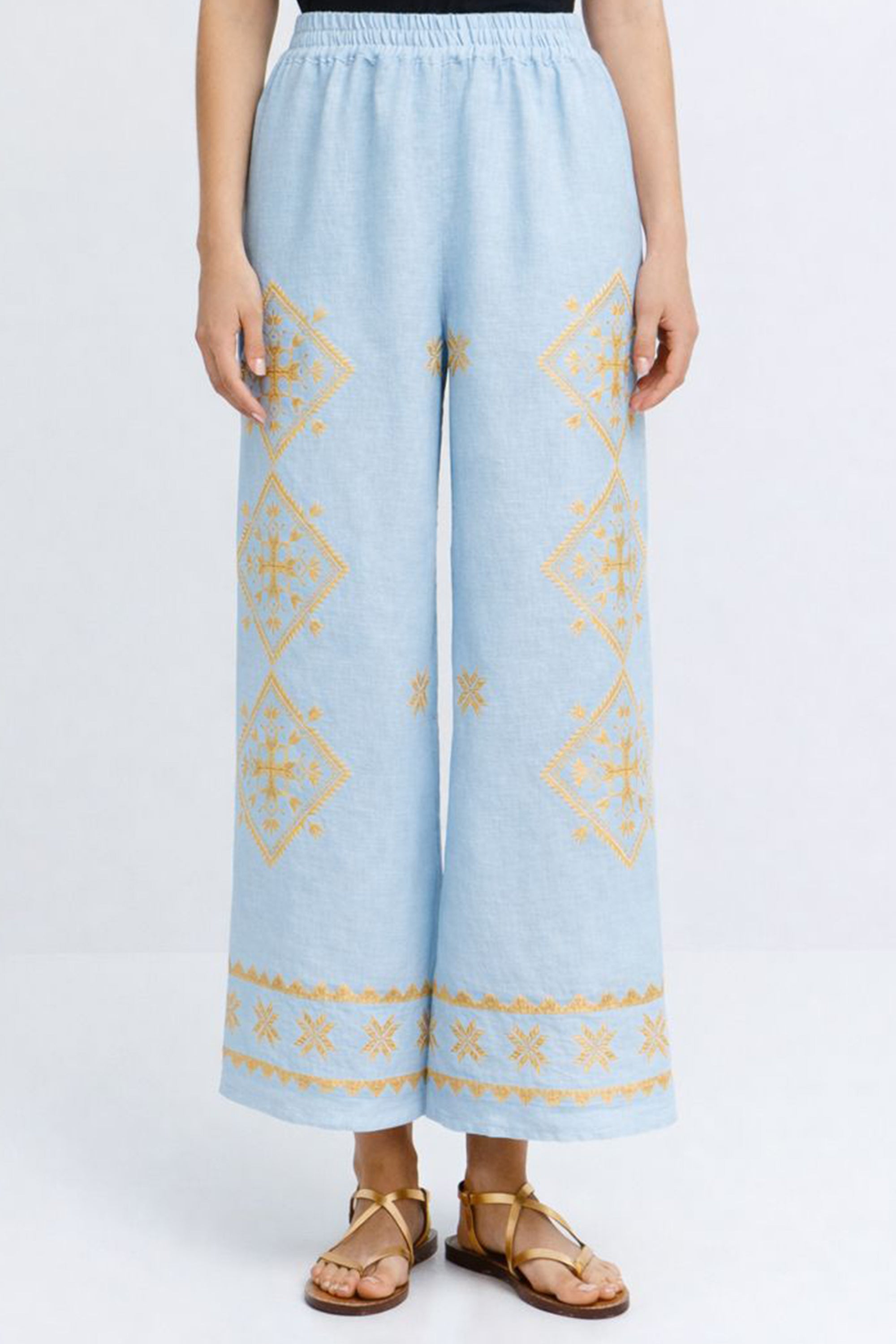 LINEN PANTS "LEFKADA" CIEL/GOLD