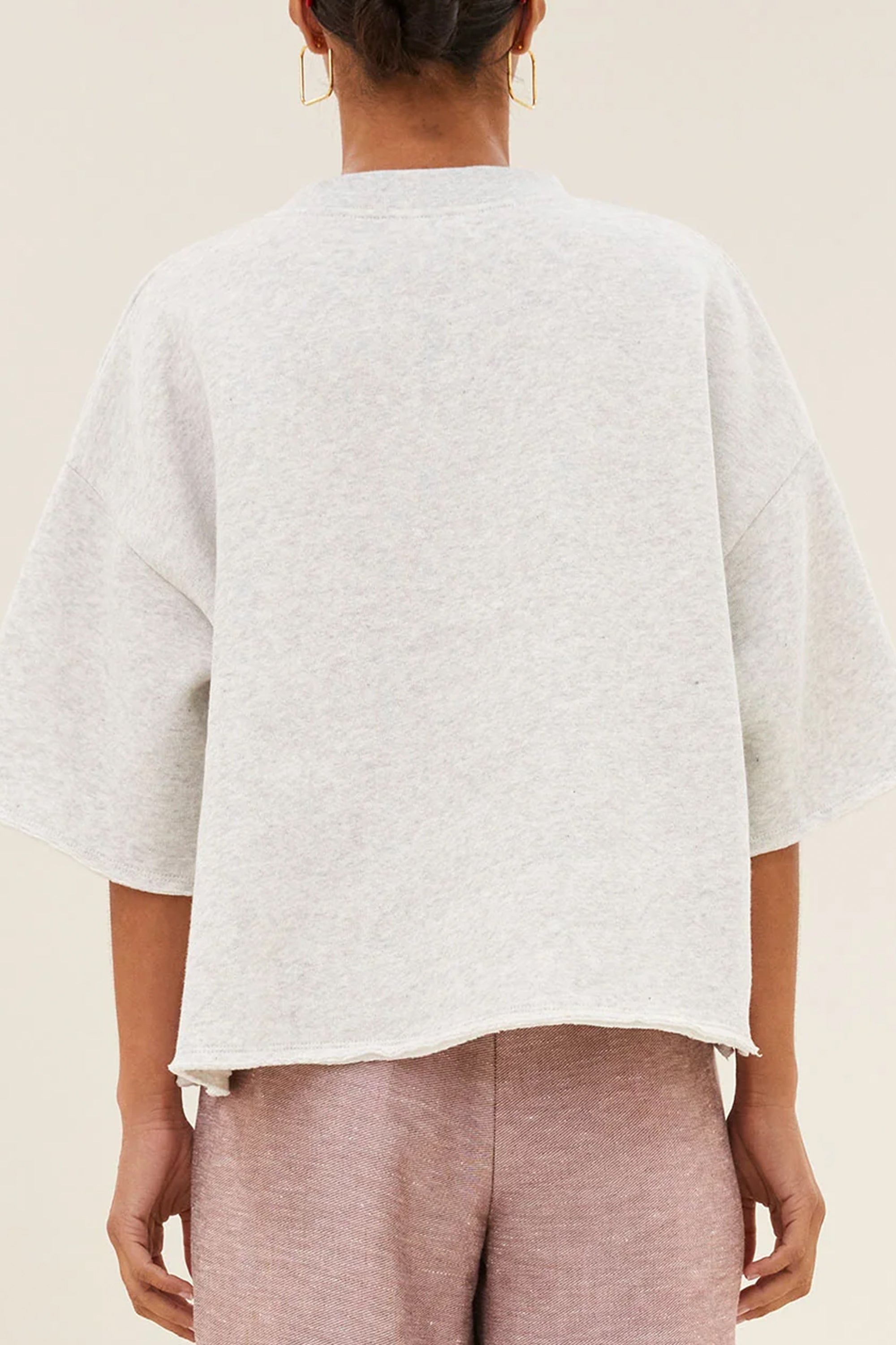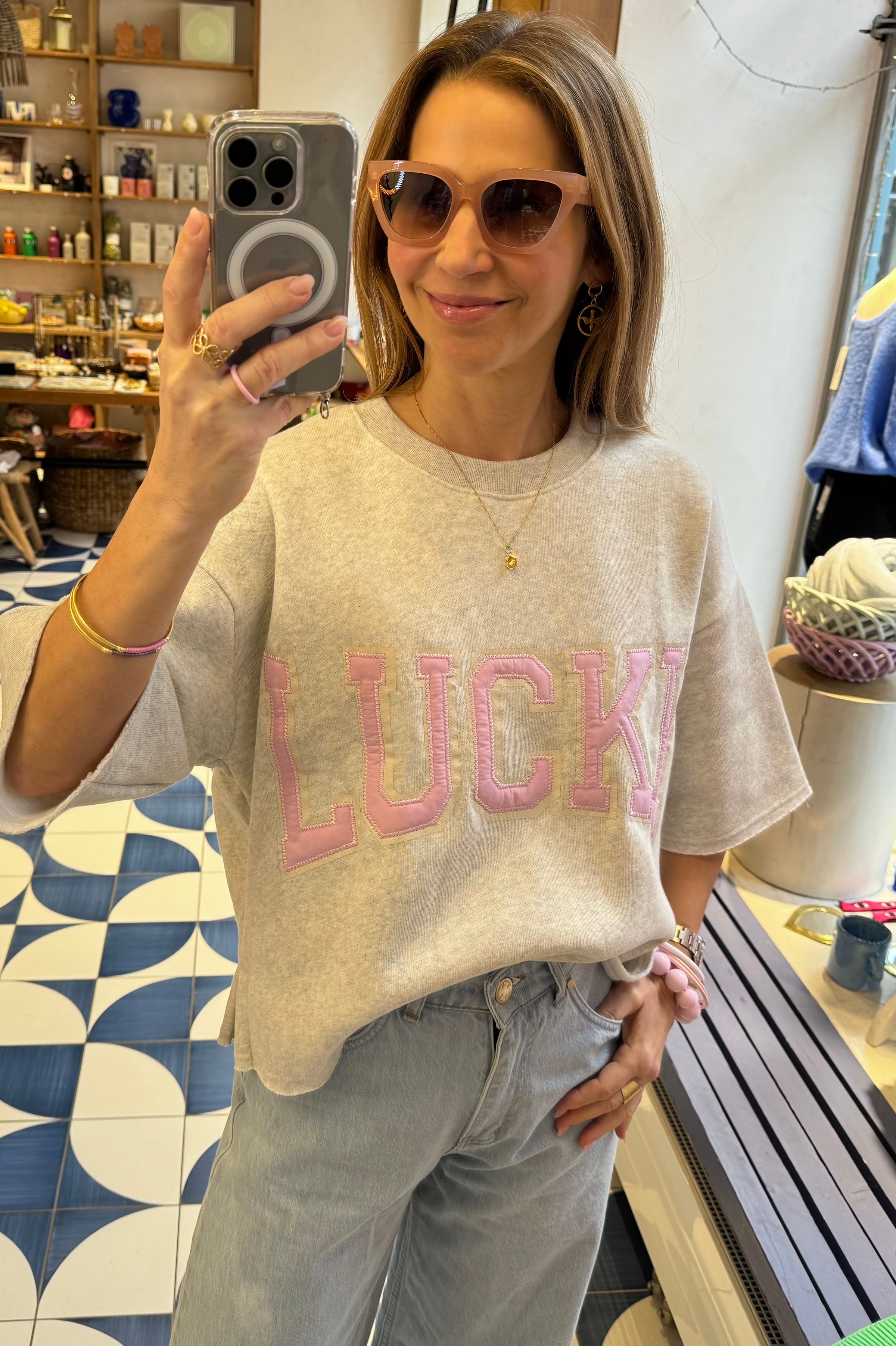 OVERSIZED COTTON PULLOVER "LUCKY" LIGHT GREY/BABY PINK