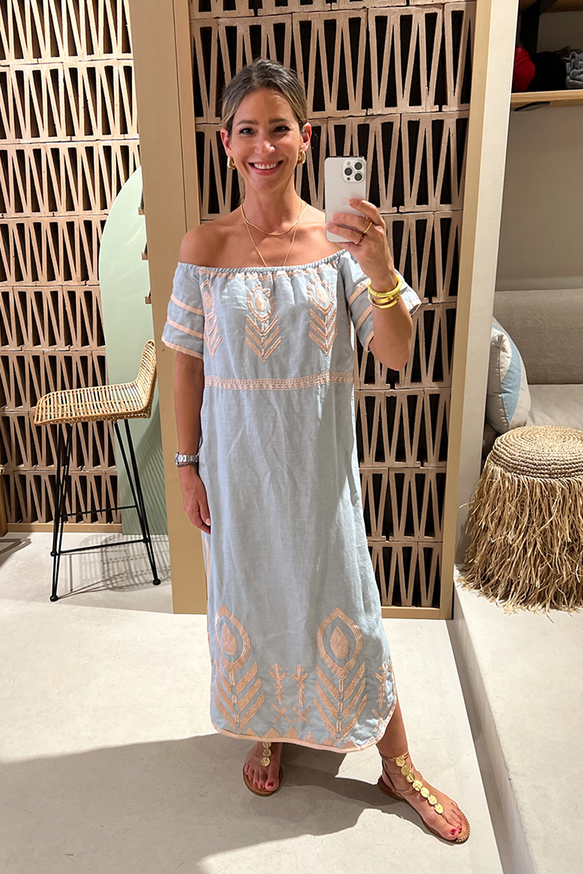 OFF SHOULDER LINEN DRESS "FEATHER" LIGHT GREY/PINK