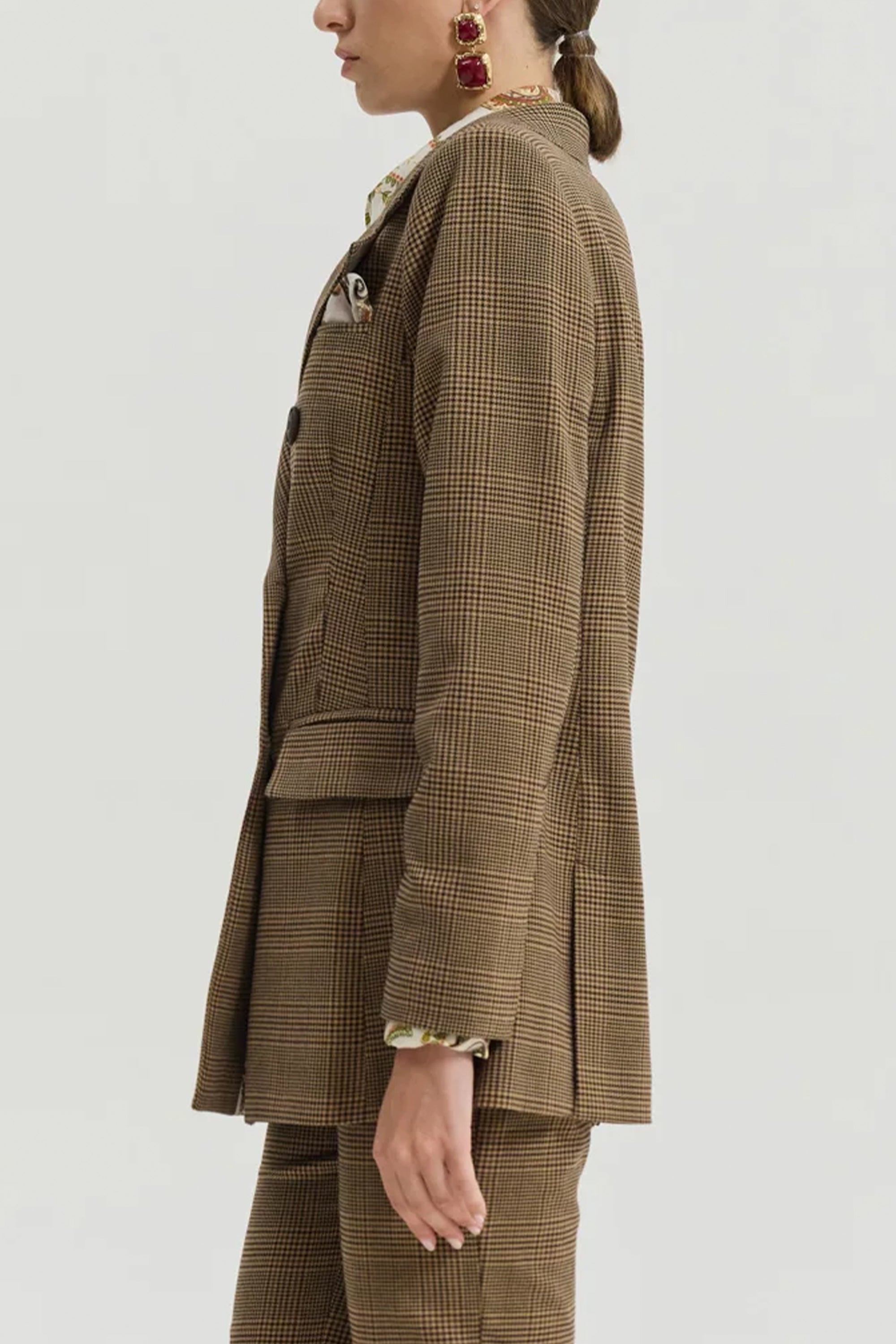 LONG OVERSIZED GLENCHECK BLAZER WITH PAISLEY LINING