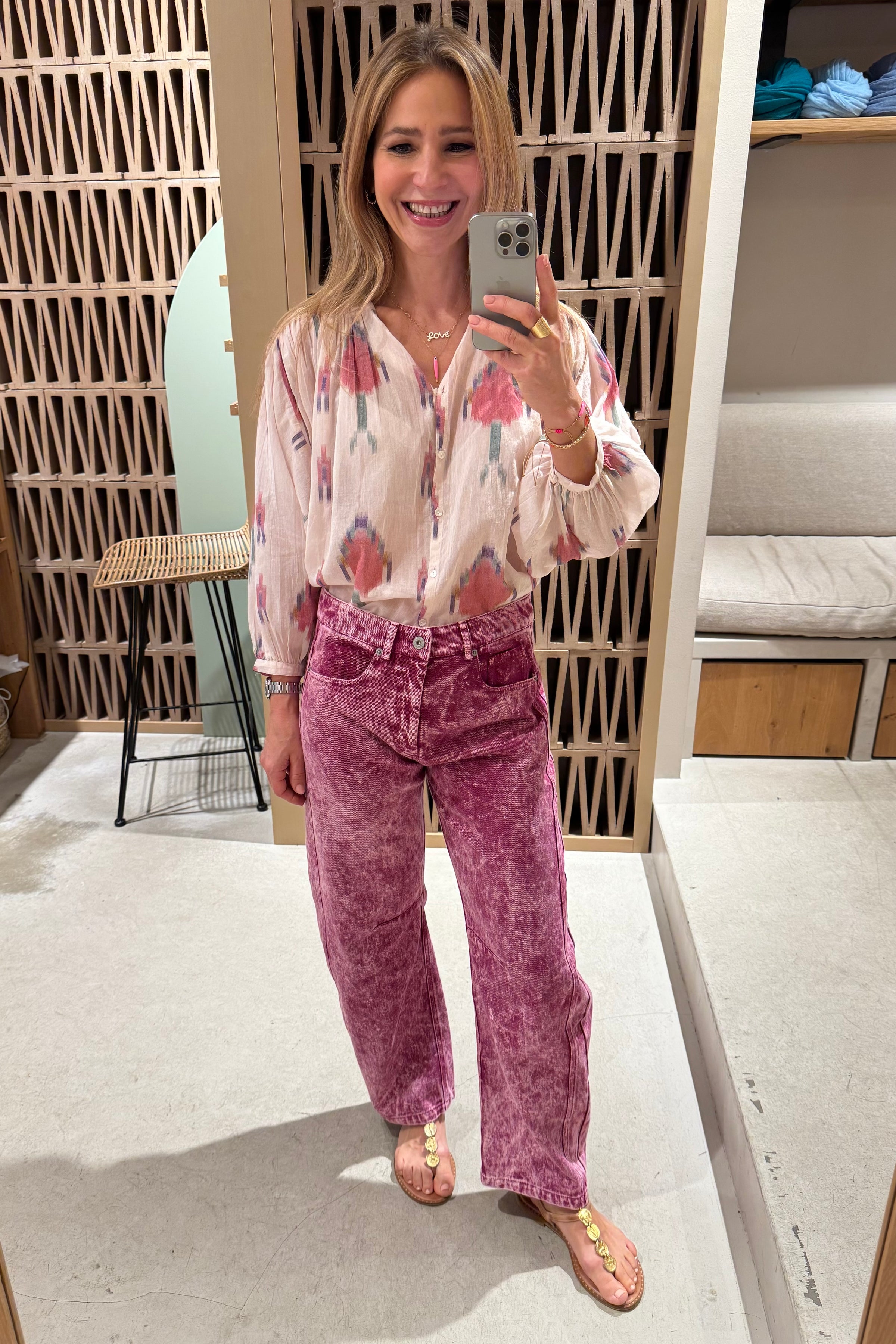 Modern geschnittene Barreljeans mit Acid-Waschung.