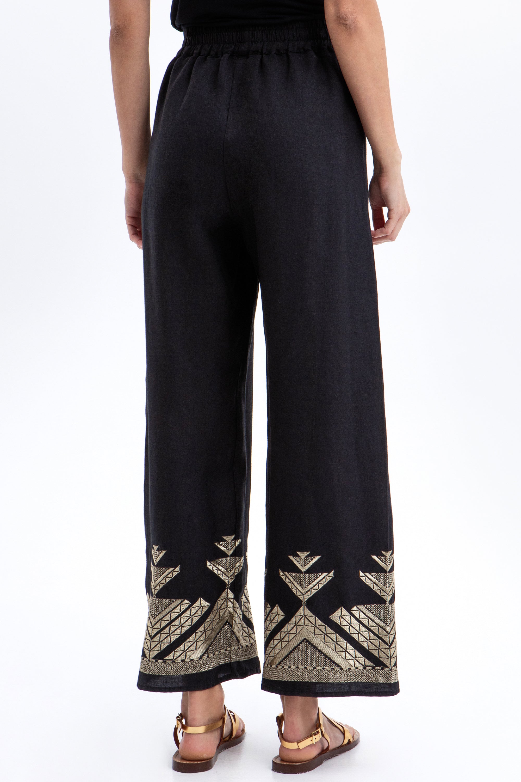 WIDE LEG LINEN PANTS "PYRAMIDS" BLACK/GOLD