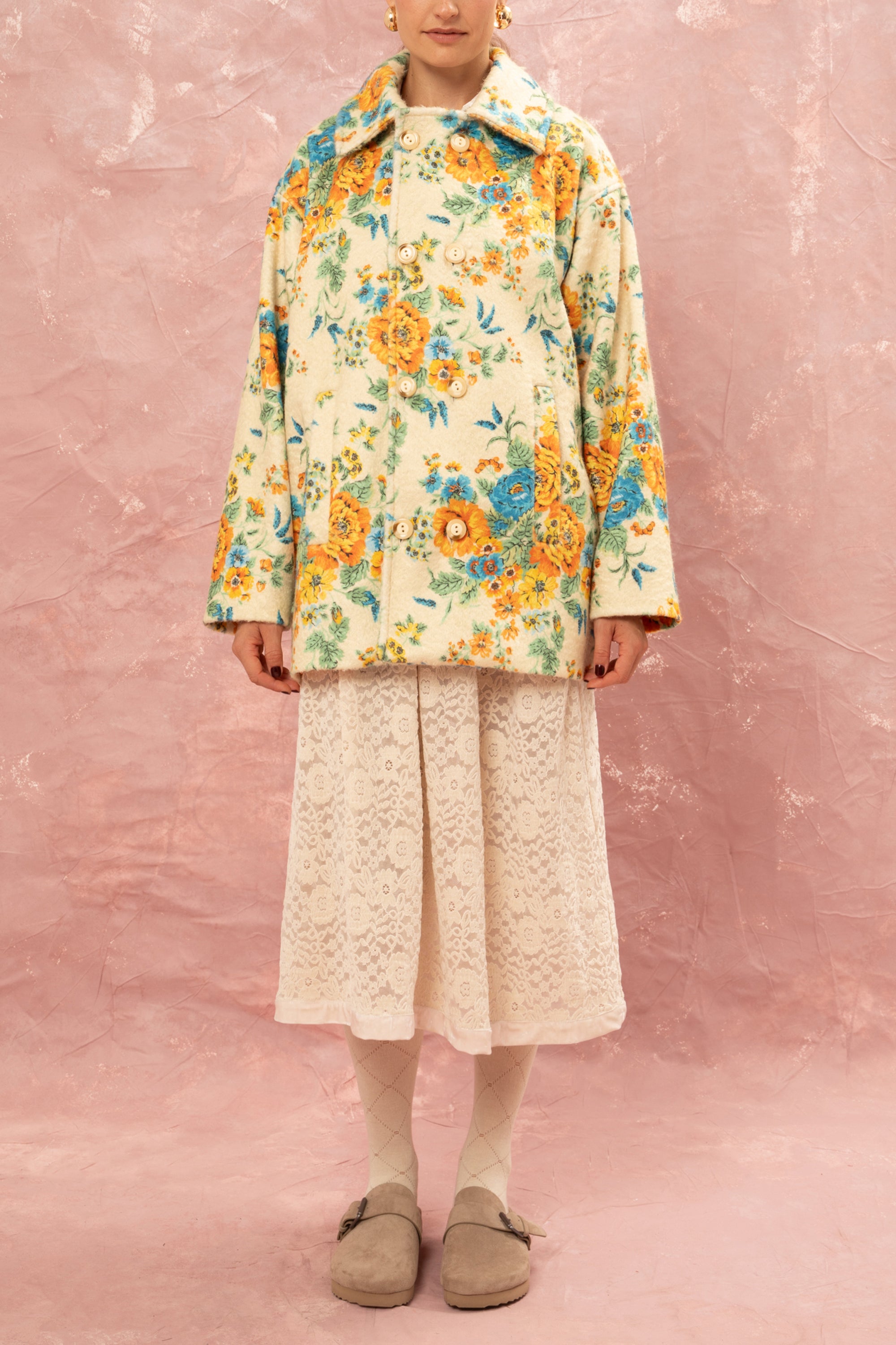 Statement oversize Jacke mit auffälligem floralem Muster.