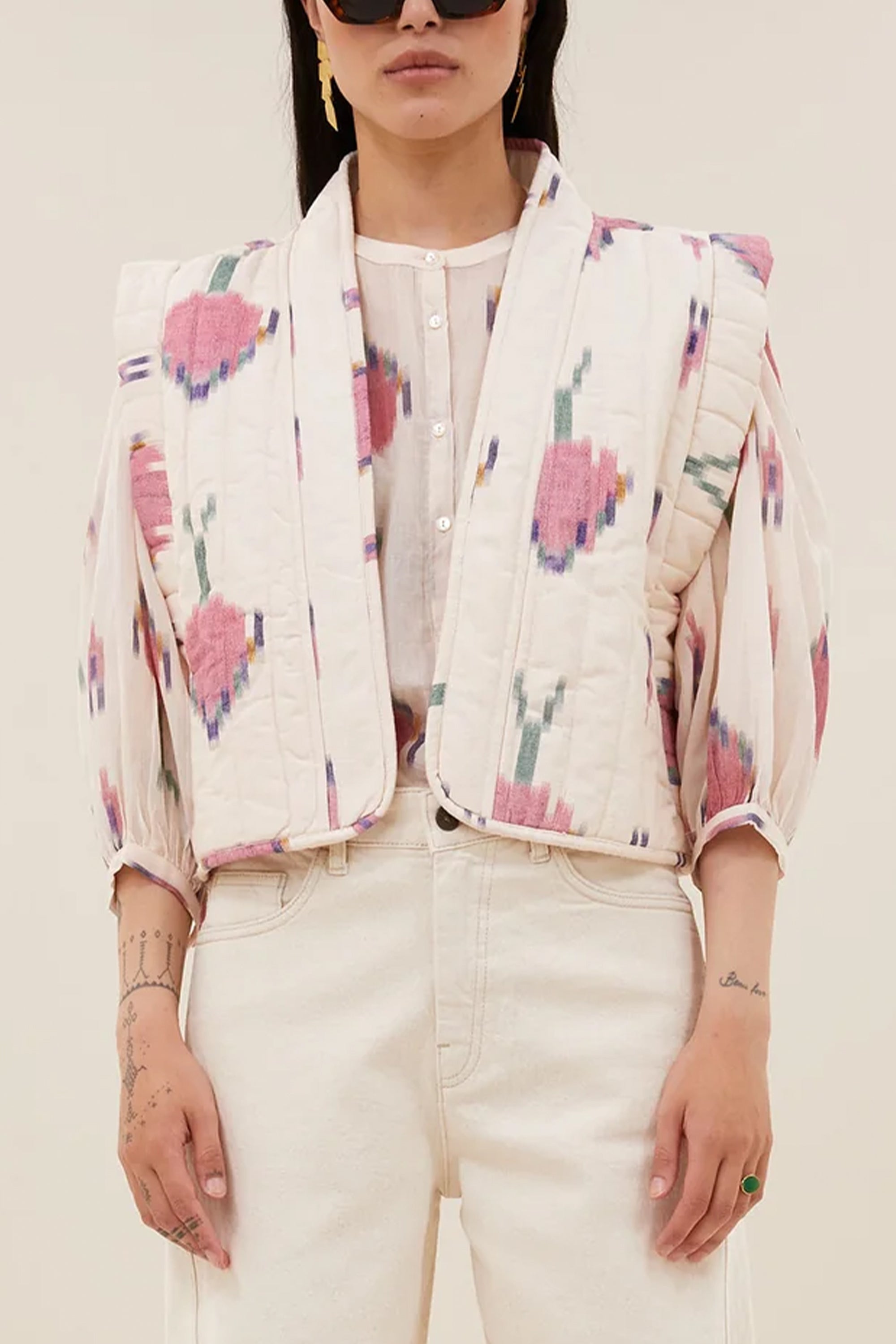COTTON VEST IVORY/MULTICOLOR
