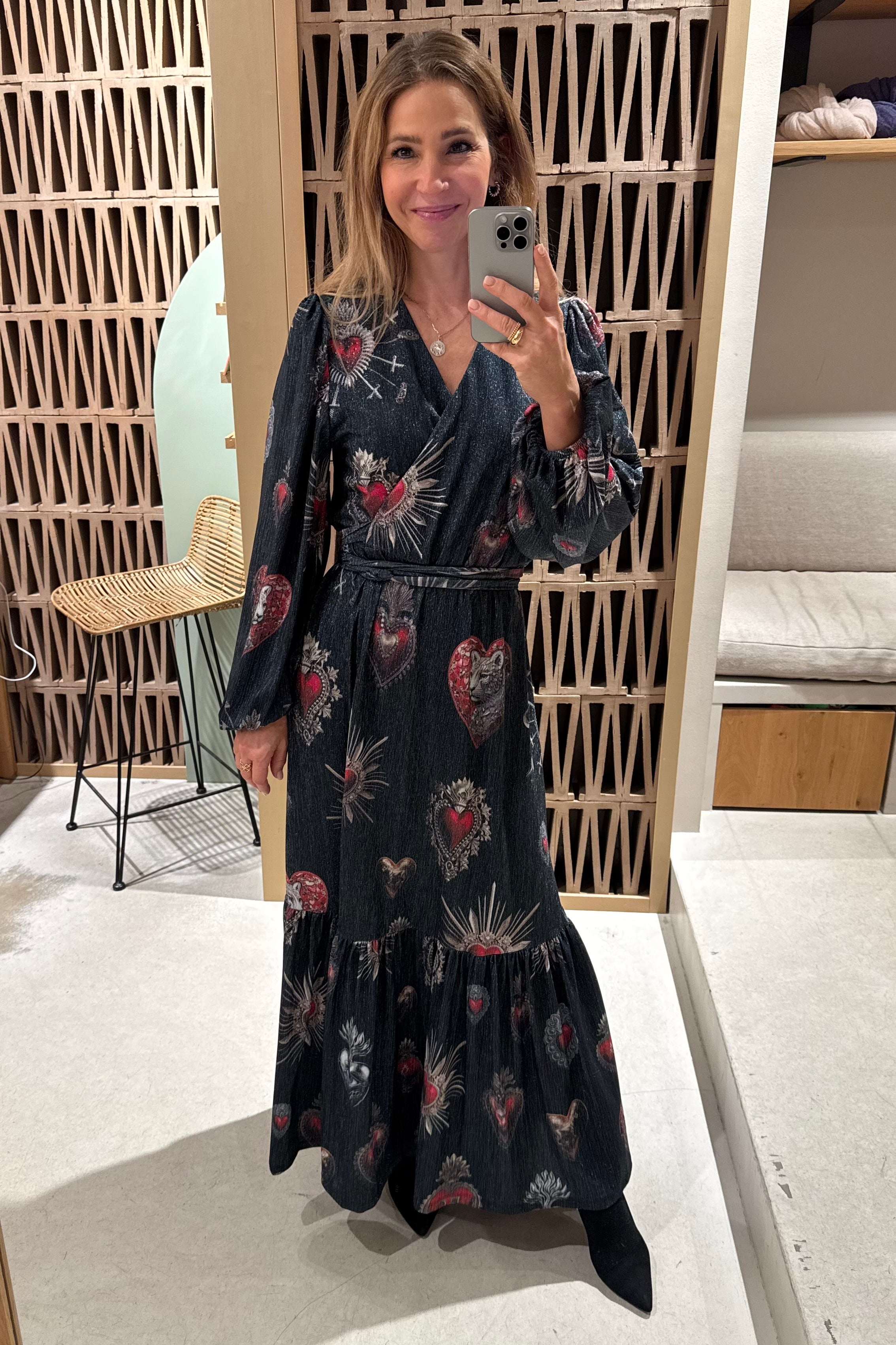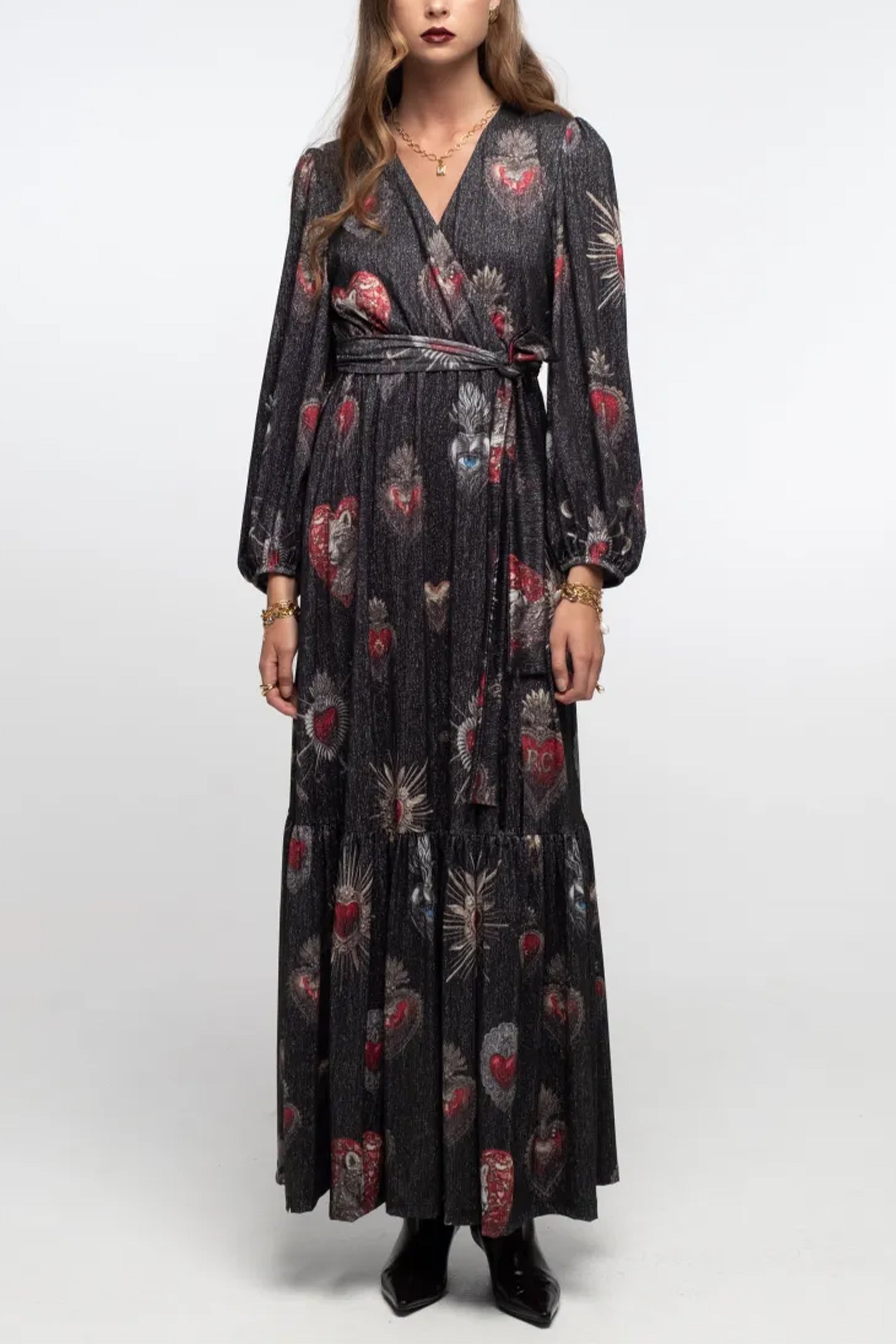 LONG LUREX JERSEY WRAP DRESS BLACK/RED