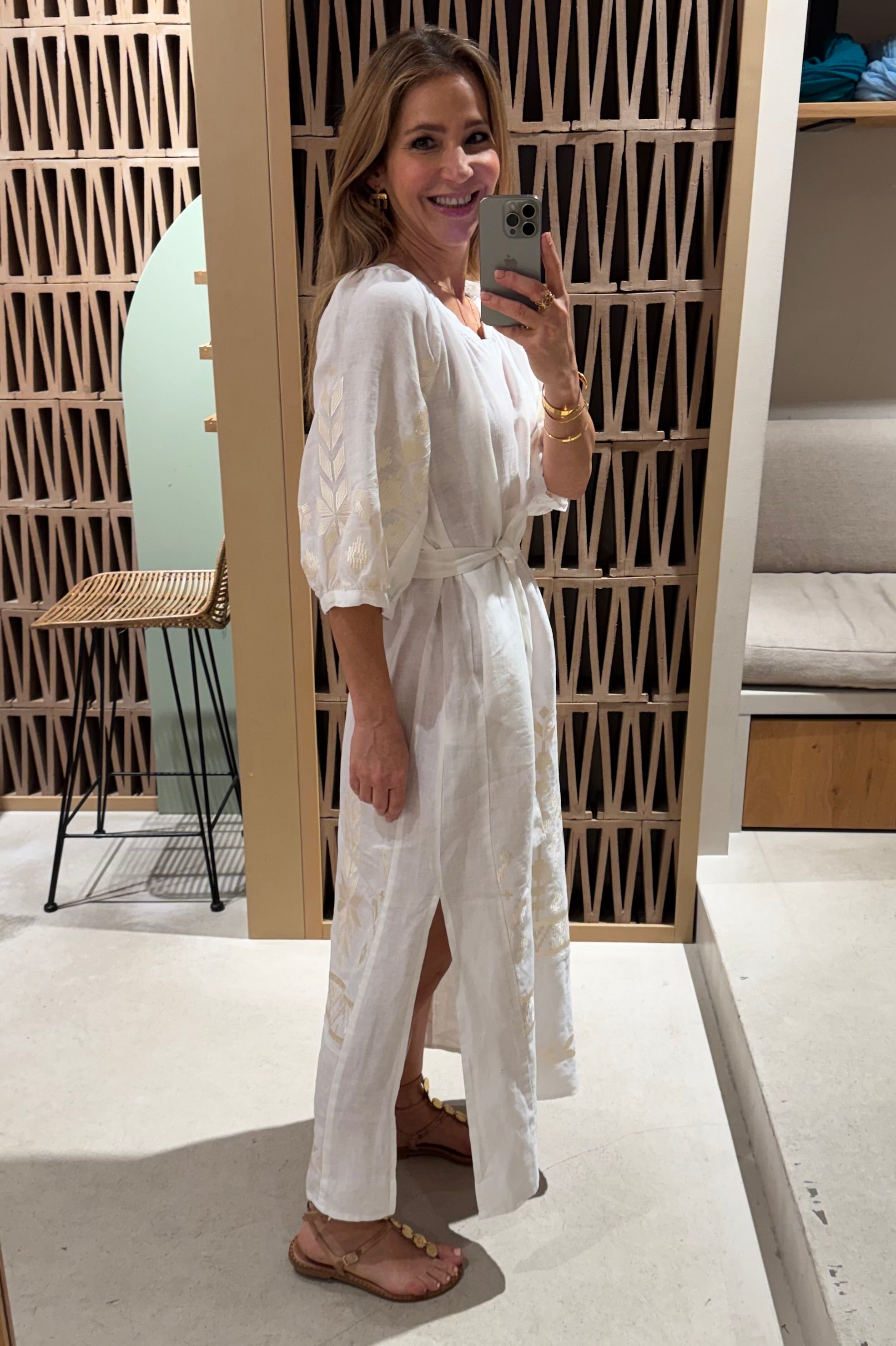 Wunderschön besticktes, aufwändig geschnittenes Leinenkleid von Kori.