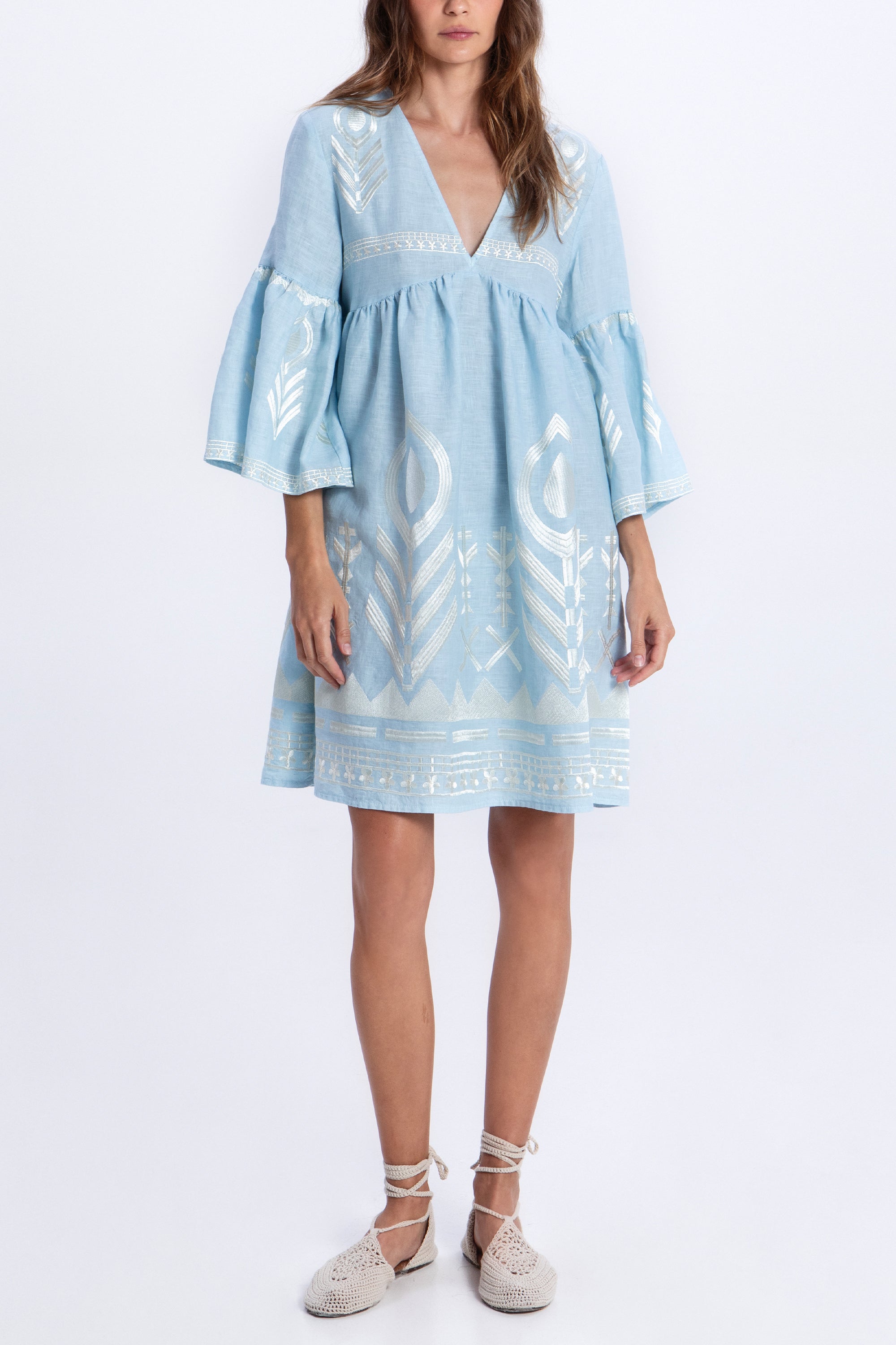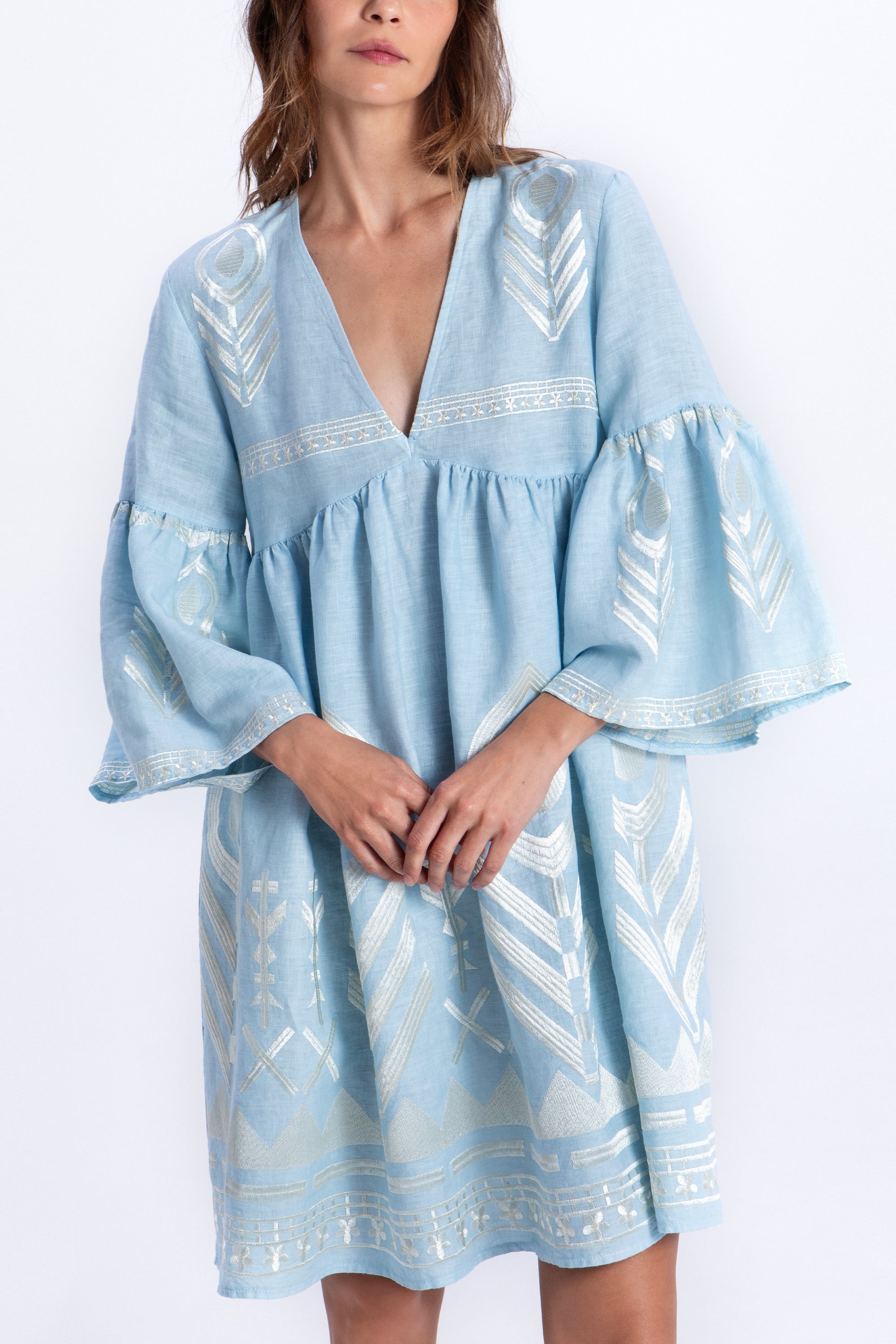 SHORT LINEN DRESS "FEATHER" CIEL/CHAMPAGNE