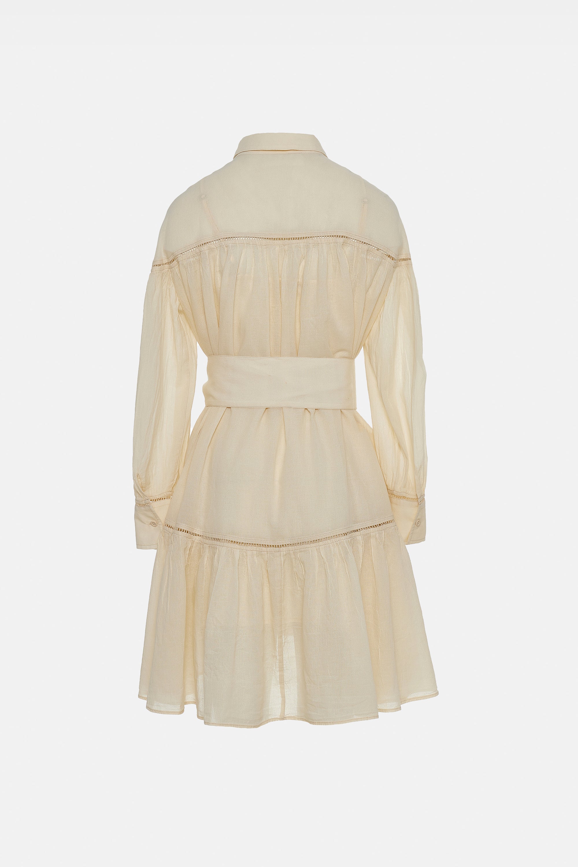 SHORT OVERSIZED GAUZE DRESS WITH BELT OFFWHITE