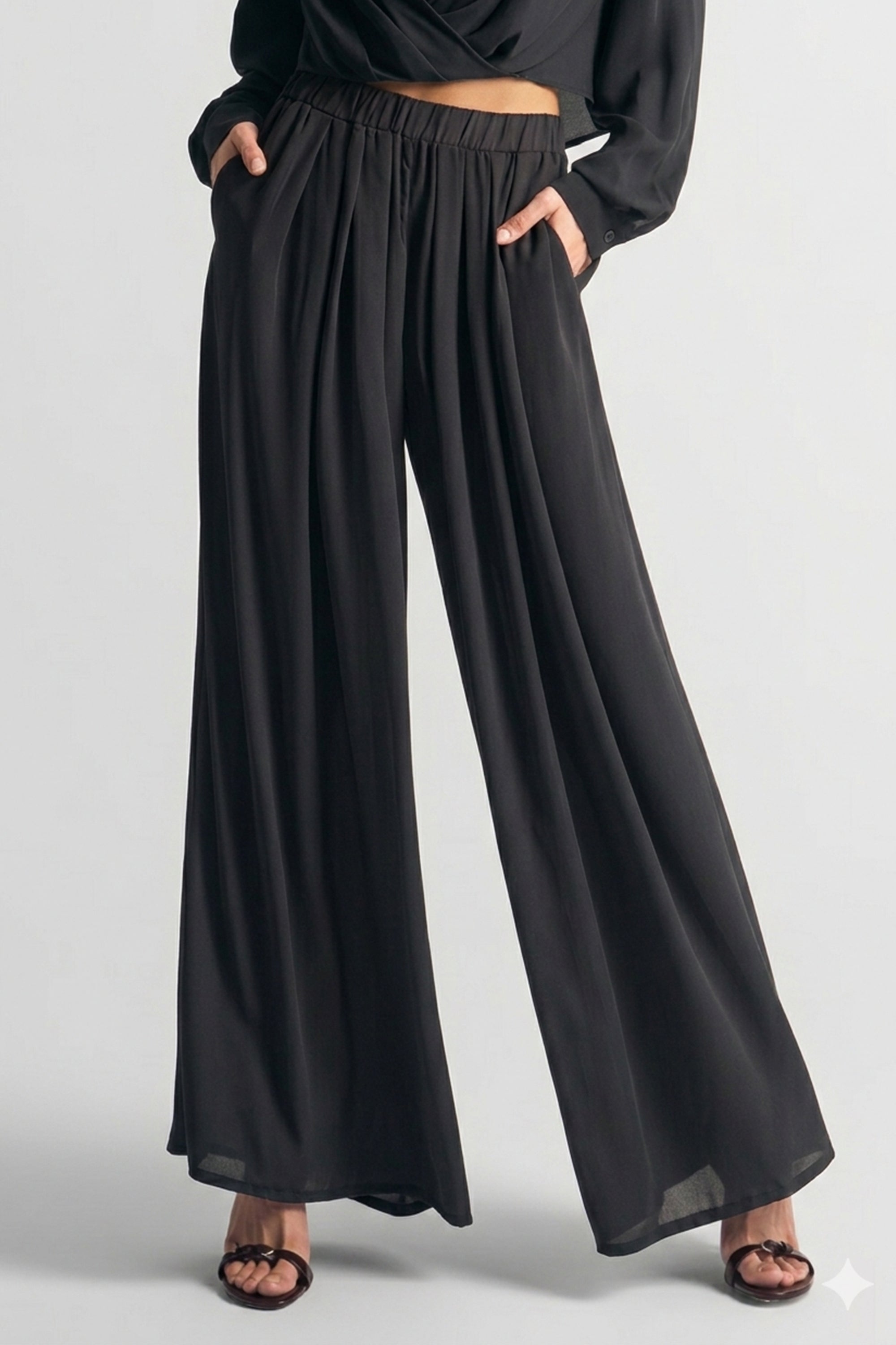 FLOWY WIDE LEG PANTS BLACK