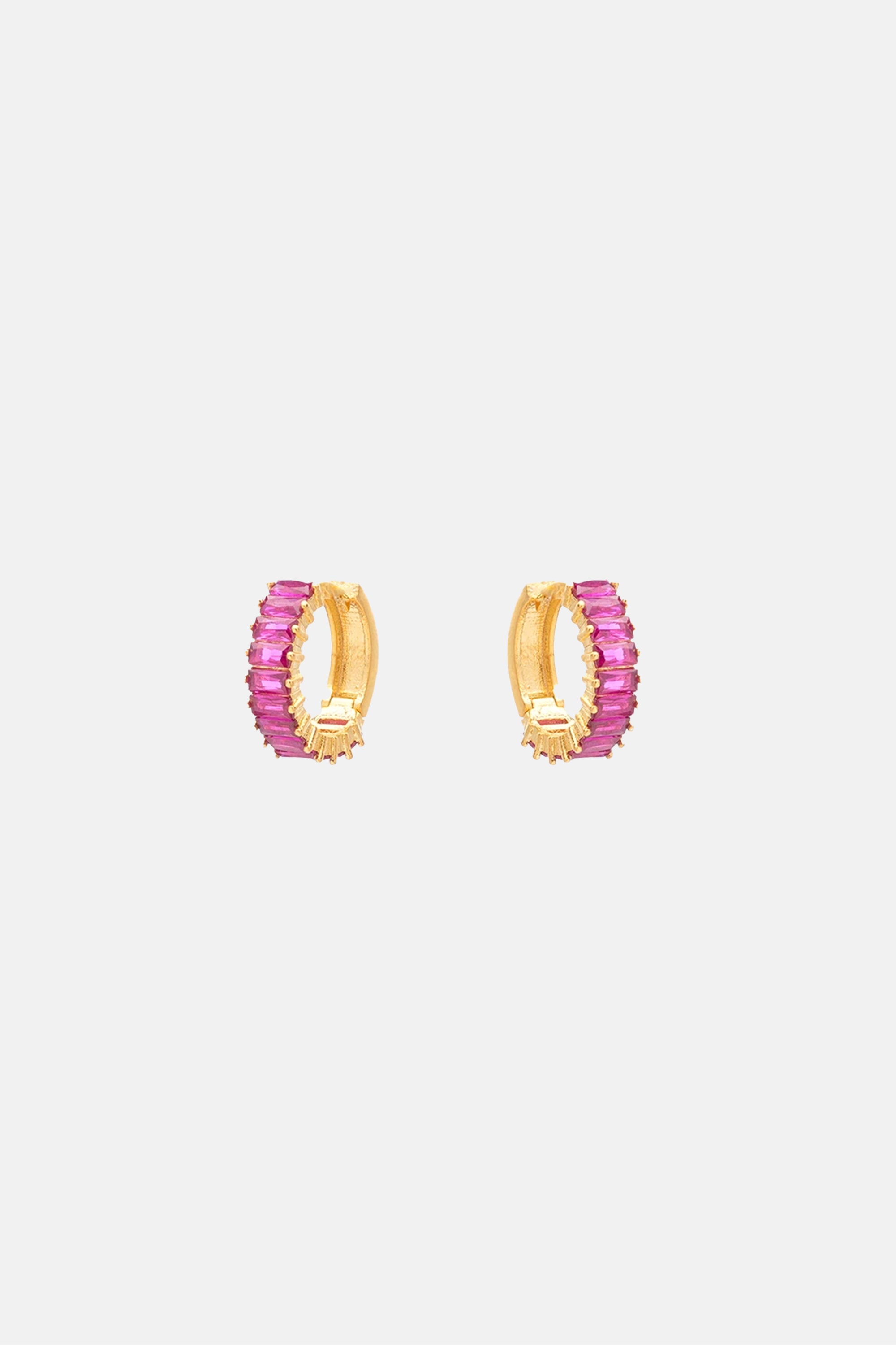 SMALL ZIRCONIA HOOPS "ELLE" GOLD/FUCHSIA