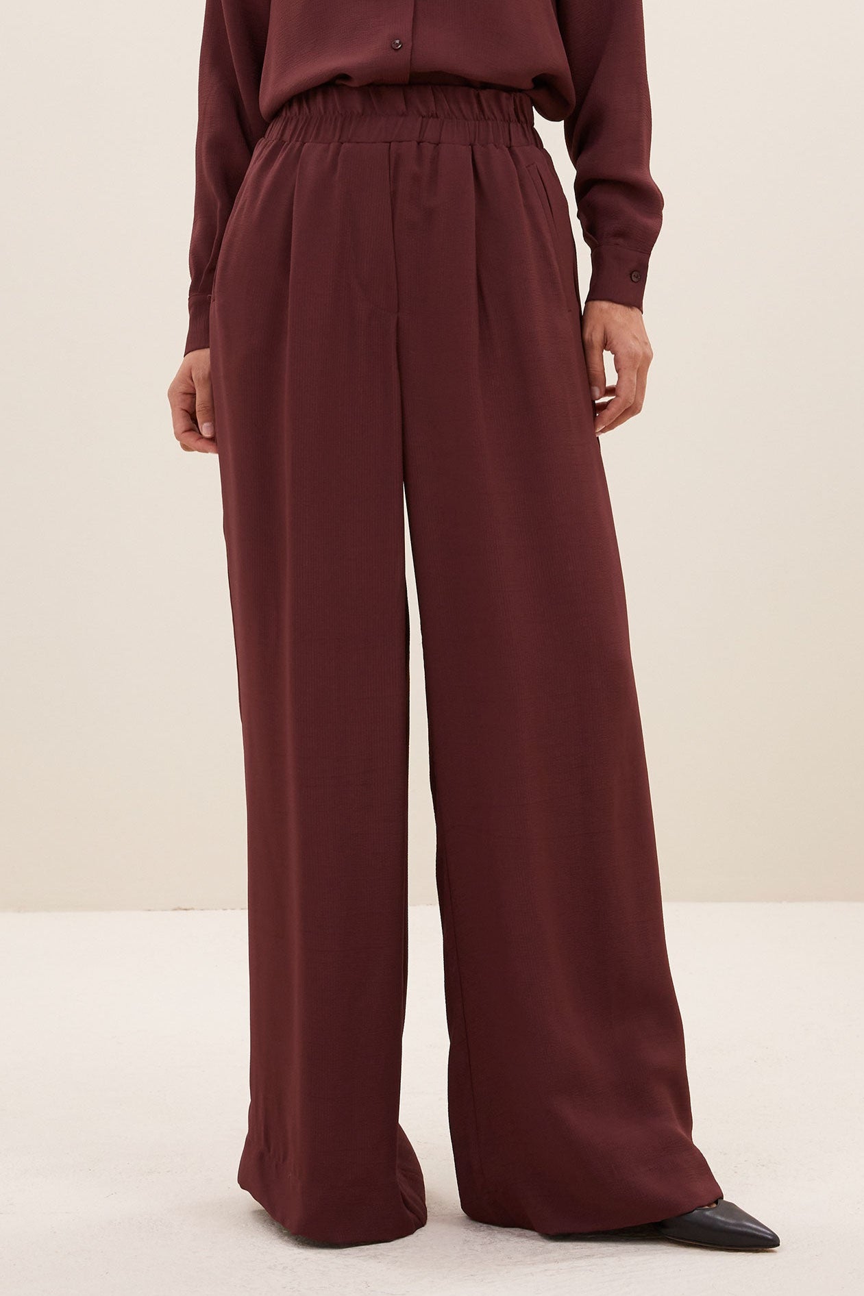 WIDE LEG VISCOSE PANTS „BURGUNDY“
