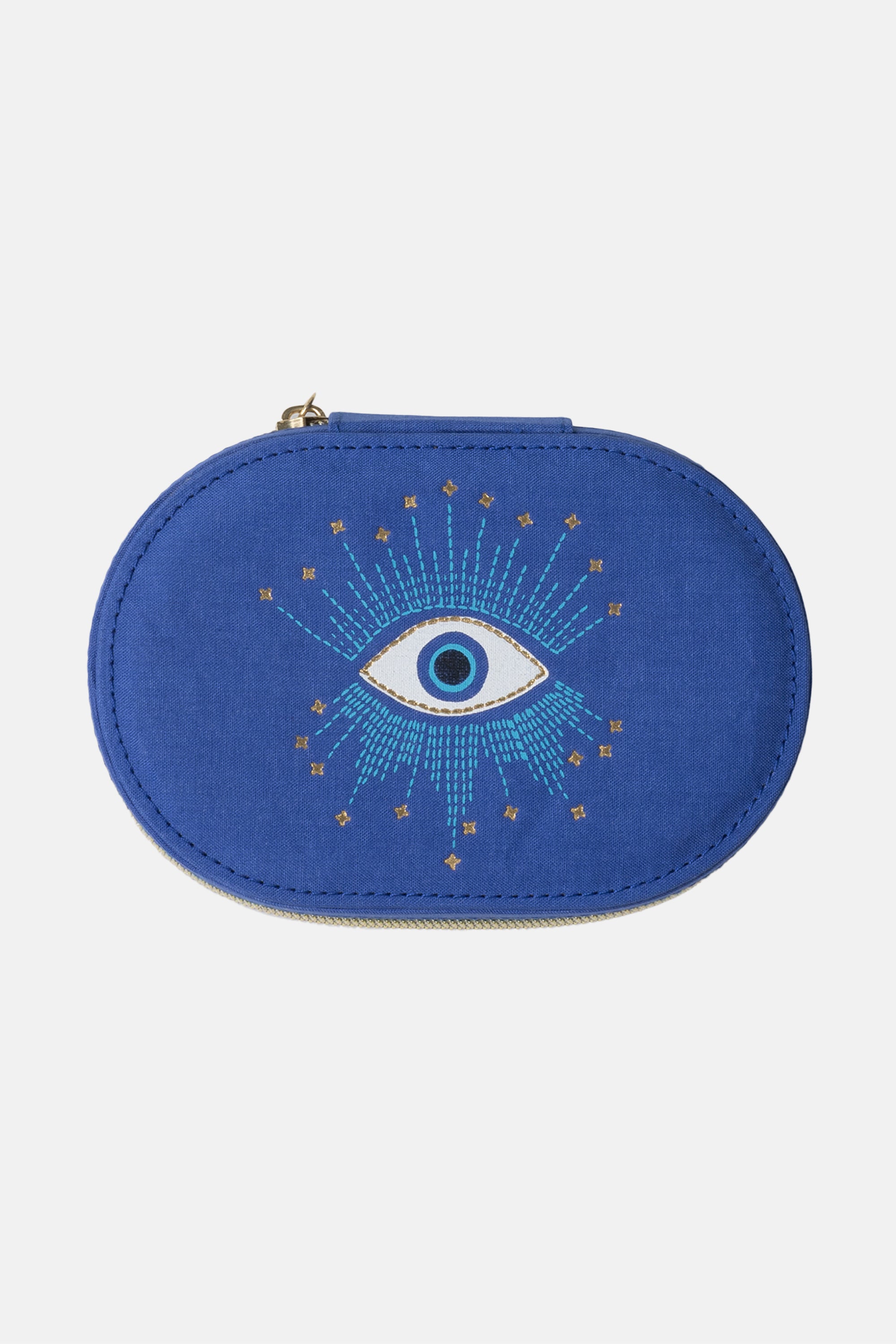 Wunderschöne Schmuckschatulle in tollem Royalblau mit Augenmotiv.