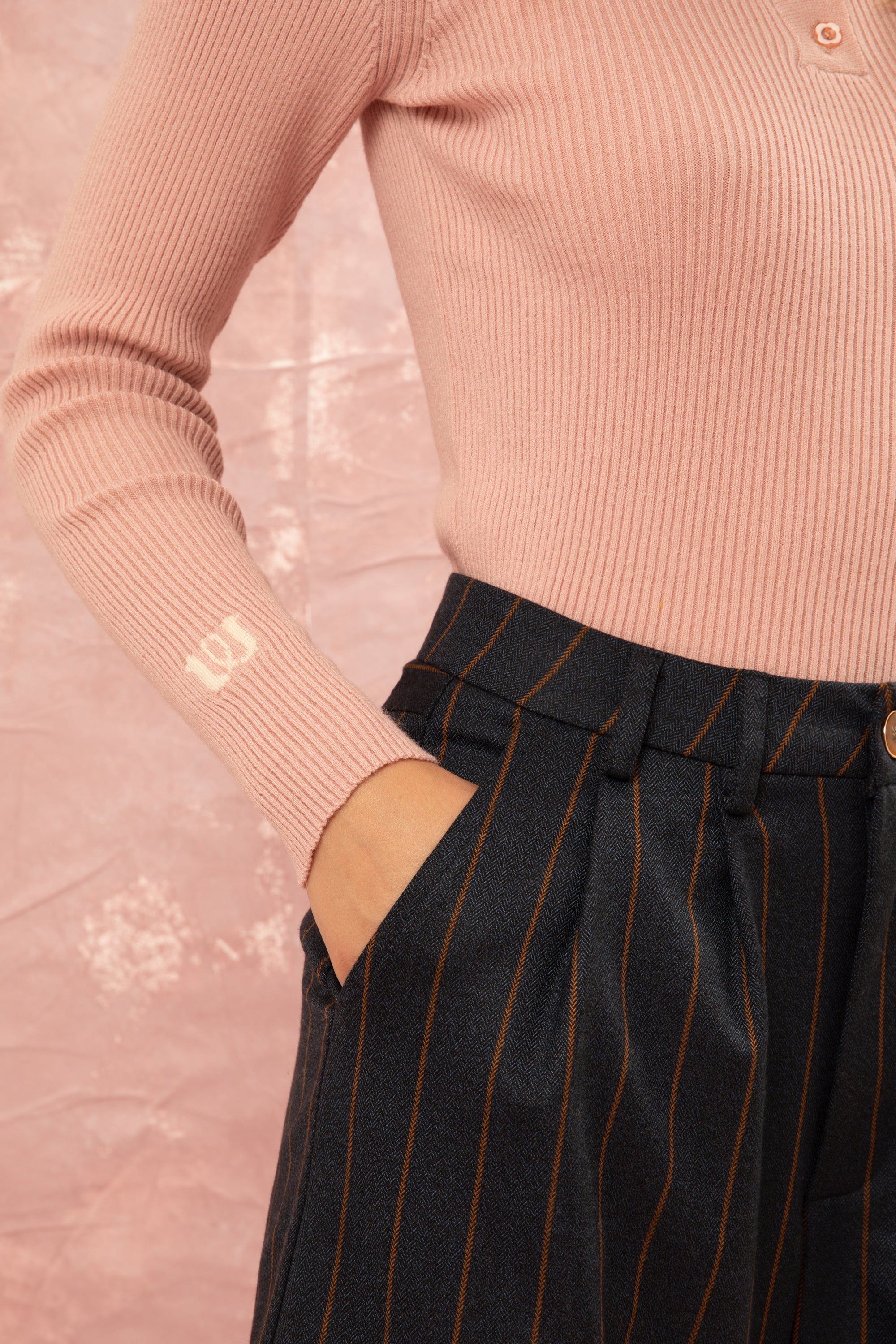 RIBBED VISCOSE POLO PULLOVER DUSTY ROSE
