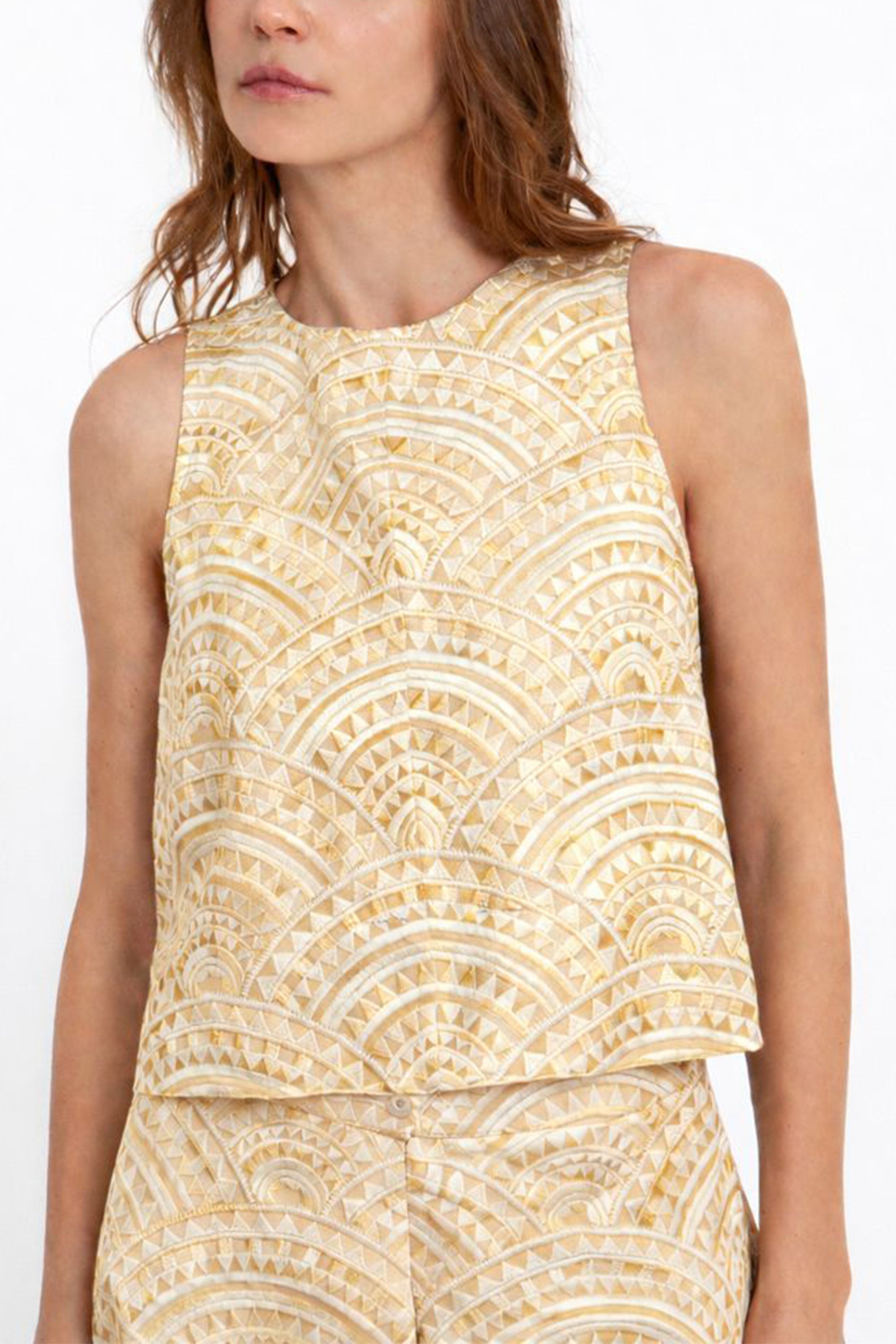 CROPPED EMBROIDERED COTTON TOP "TRIANGLE" WHITE/GOLD