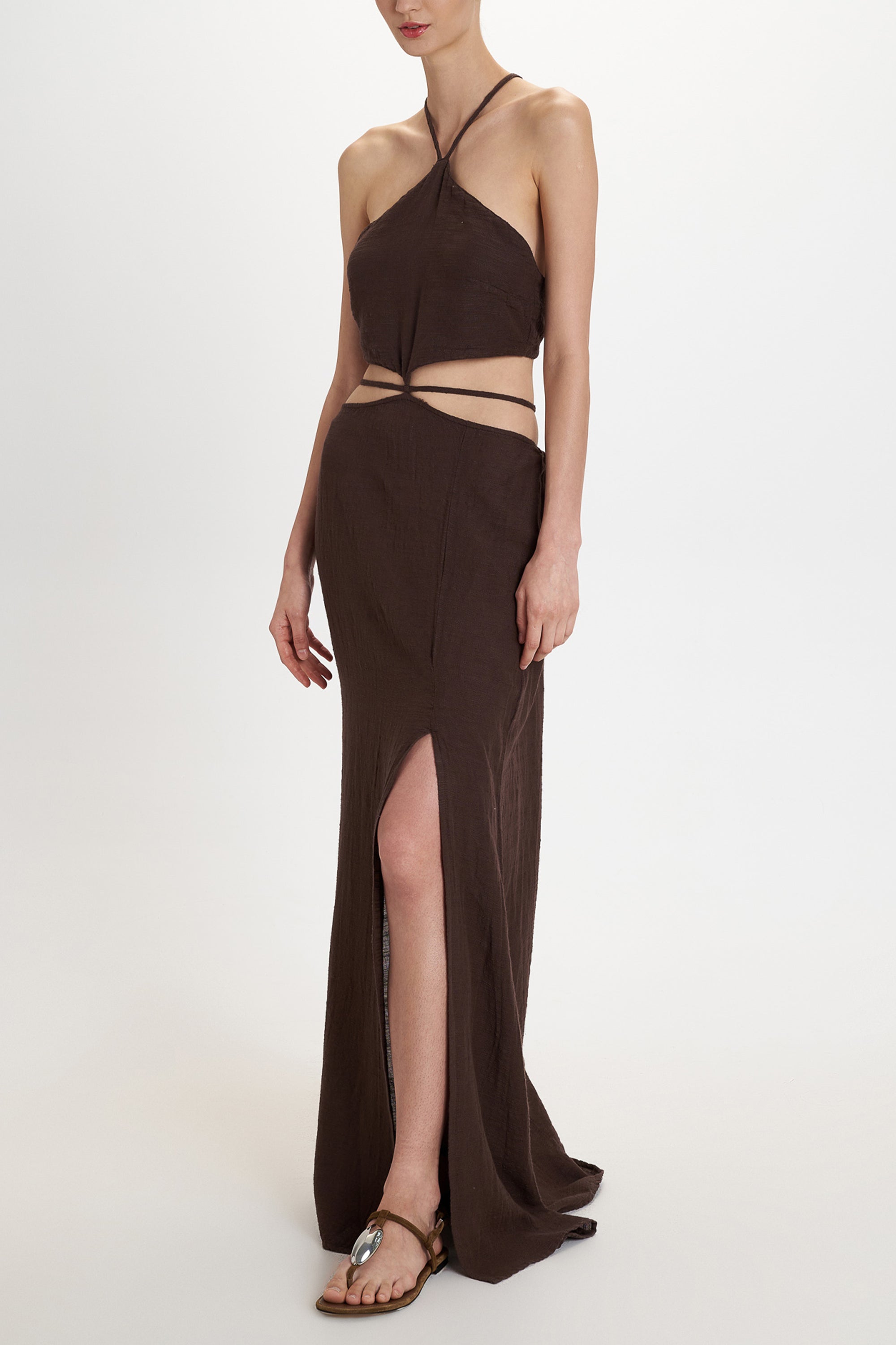 BACKLESS DRESS WITH CUTOUTS "MALIA" CHOCOLATE