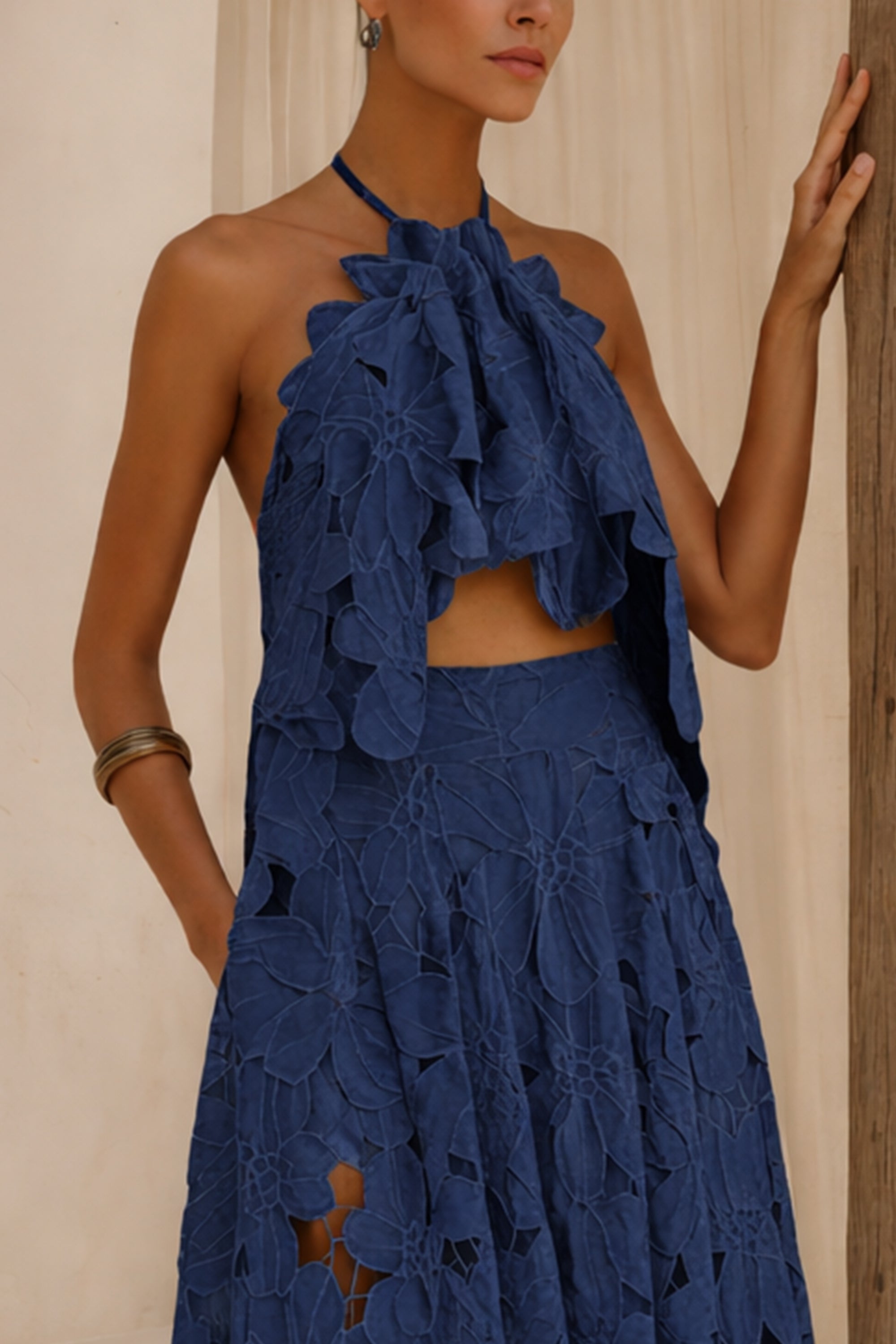 BACKLESS NECKHOLDER LACE TOP "AURELIA" ROYAL BLUE