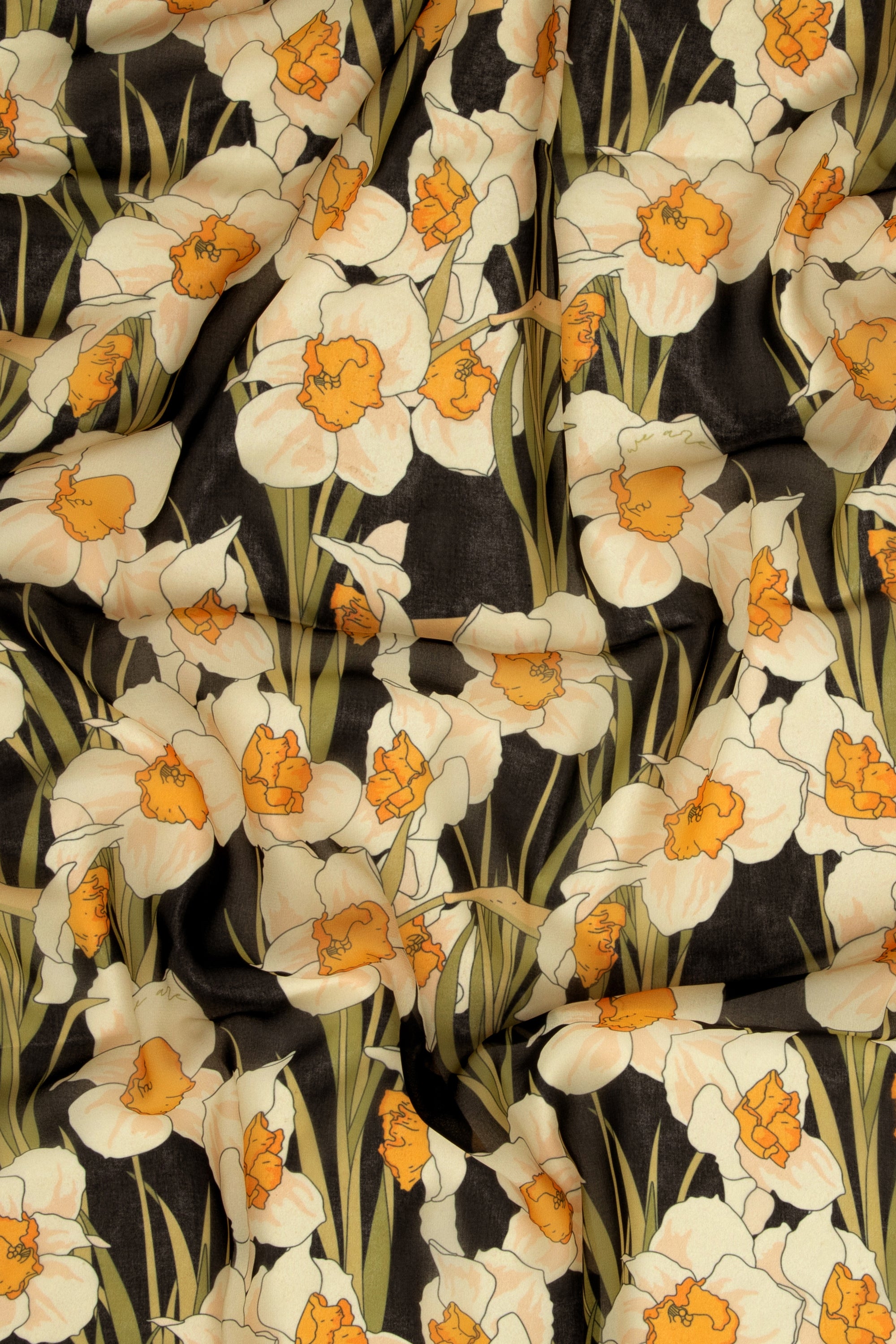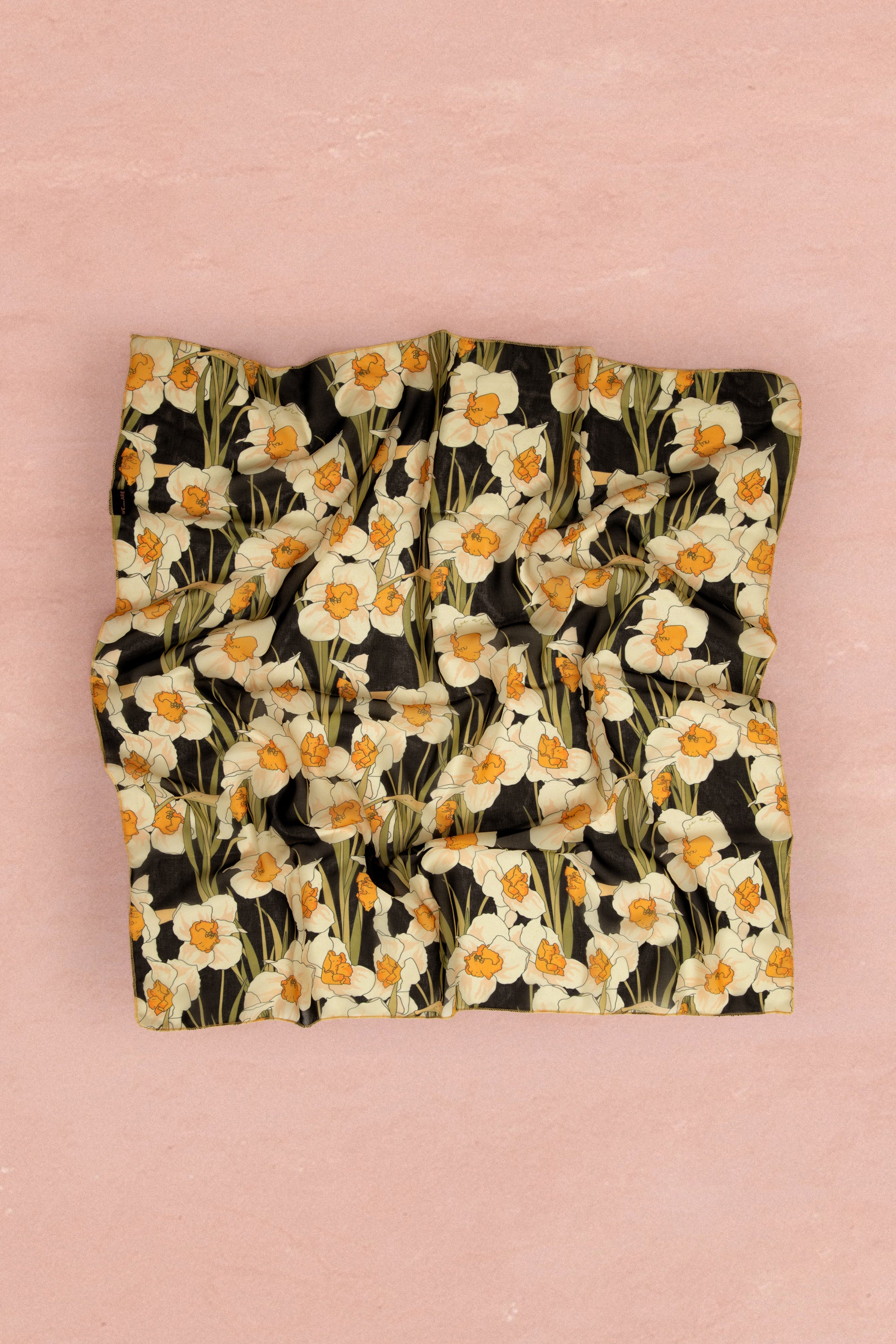 SILKY SCARF "NARCISSE" BLACK/YELLOW/OFF WHITE
